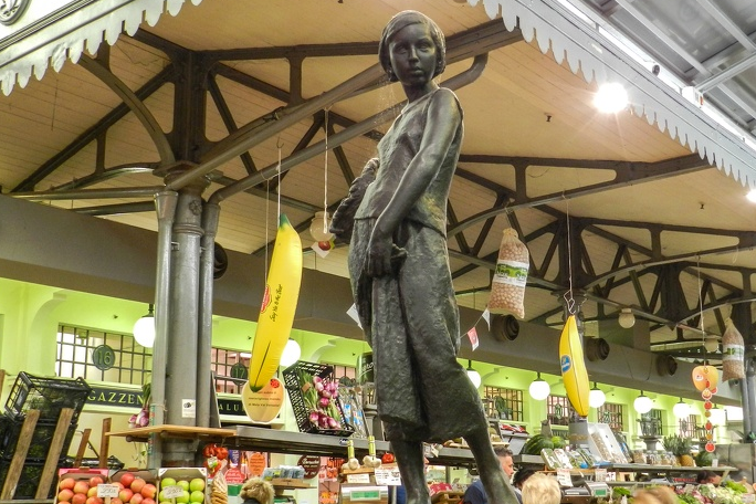 This art nouveau jewel drew inspiration from the first French covered markets. Among the market’s unusual architectural features are the black and gold insignias on the shop fronts in brickwork, the wrought iron gate, and the elegant scrollwork, also in wrought iron, which connects the supporting columns. At the center of the market is a beautiful fountain, the “Maiden with a Basket of Fruit,” by Giuseppe Graziosi.