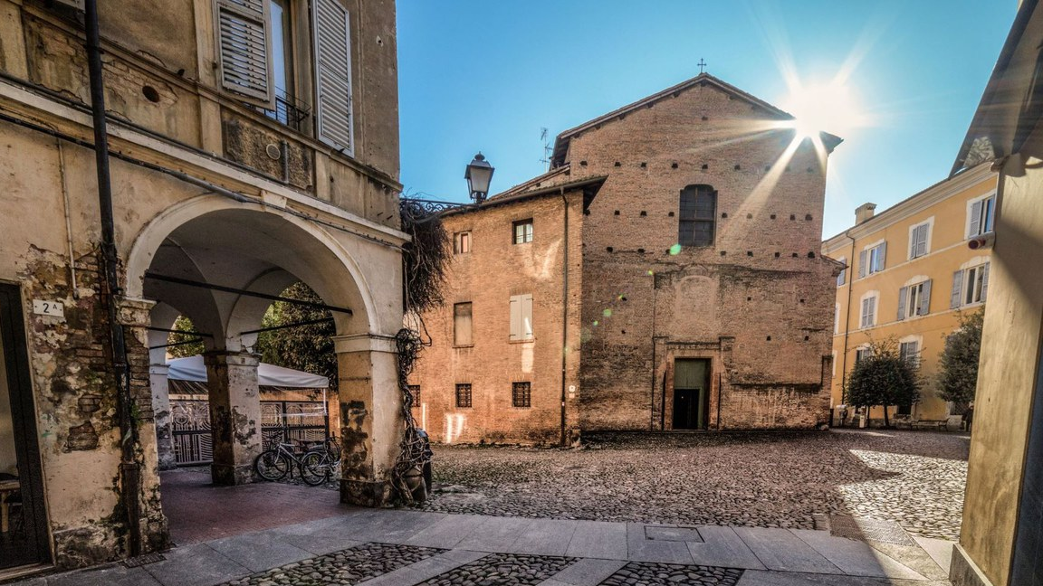The piazza takes its name from the church dedicated to Santa Maria della Pomposa, at one time annexed to the better known Pomposa Abbey in Comacchio, which was founded in the 9th century. Today the piazza looks as it did in the 18th century, though the adjoining urban spaces have been redeveloped and are now used for popular entertainment. At No. 89 is “Casa Tassoni,” a typical example of a Renaissance-era residence in Modena. Nearby, on Via della Pomposa, is the Aedes Muratoriana complex, which includes the house in which the distinguished intellectual, Ludovico Antonio Muratori, lived between the 17th and 18th centuries. Muratori is considered the father of Italian historiography, and his residence stands alongside the church of Santa Maria Pomposa, one of the oldest in the city, where Muratori served as parish priest from 1716 until his death.