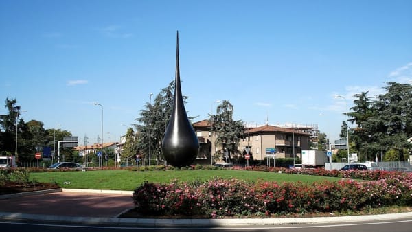 La grande goccia di Aceto Balsamico, posizionata al centro della rotatoria sulla strada principale è nota come“Goccia. L’Essenza”. Questo monumento celebra la forma perfetta, liscia, sinuosa e morbida che rappresenta la vera e propria essenza del Balsamico, racchiudendo in sé l’intero mondo da cui proviene, incredibile risultato del lavoro della natura e dell’uomo.