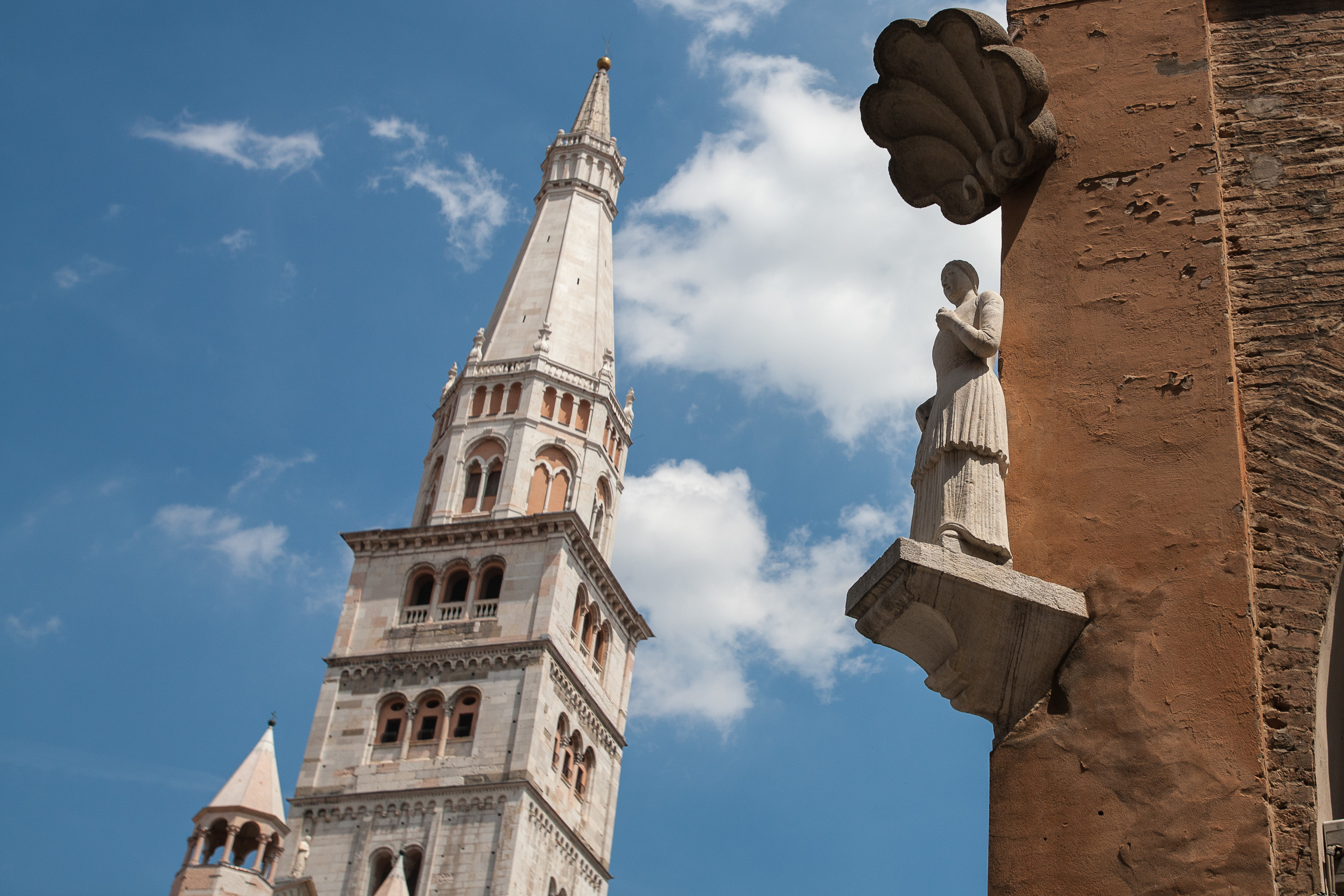 Sentinella e signora della città, la torre Ghirlandina è il simbolo di Modena. Con i suoi quasi 90 metri di altezza svetta a fianco del Duomo fiera ed elegante da più di 700 anni. È un’architettura davvero stupefacente che, insieme appunto a Duomo e a Piazza Grande, è stata dichiarata nel 1997 dall’UNESCO Patrimonio Mondiale dell’Umanità. Salirci in cima per godersi la meravigliosa vista a 360° sulla città è sempre un’esperienza da fare, ma quello che può renderla ancora più speciale è una dichiarazione importante o una promessa per la vita.